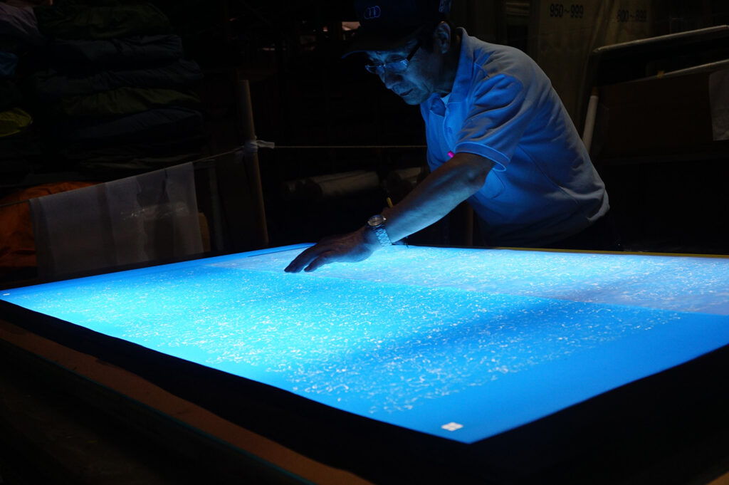 デザインの表現可否を量産加工前に確かめる工程です。デザインの確認から実際に生地にプリントしたサンプルの作成までを行います。プリント加工は技法によって仕上がりに大きな差が生まれます。客先と作り手の間で製品イメージの刷り合わせを丁寧に行うことが重要です。
