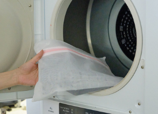 ②乾燥機にかける。(金具を傷つける恐れがあるため、ネットに入れてください)